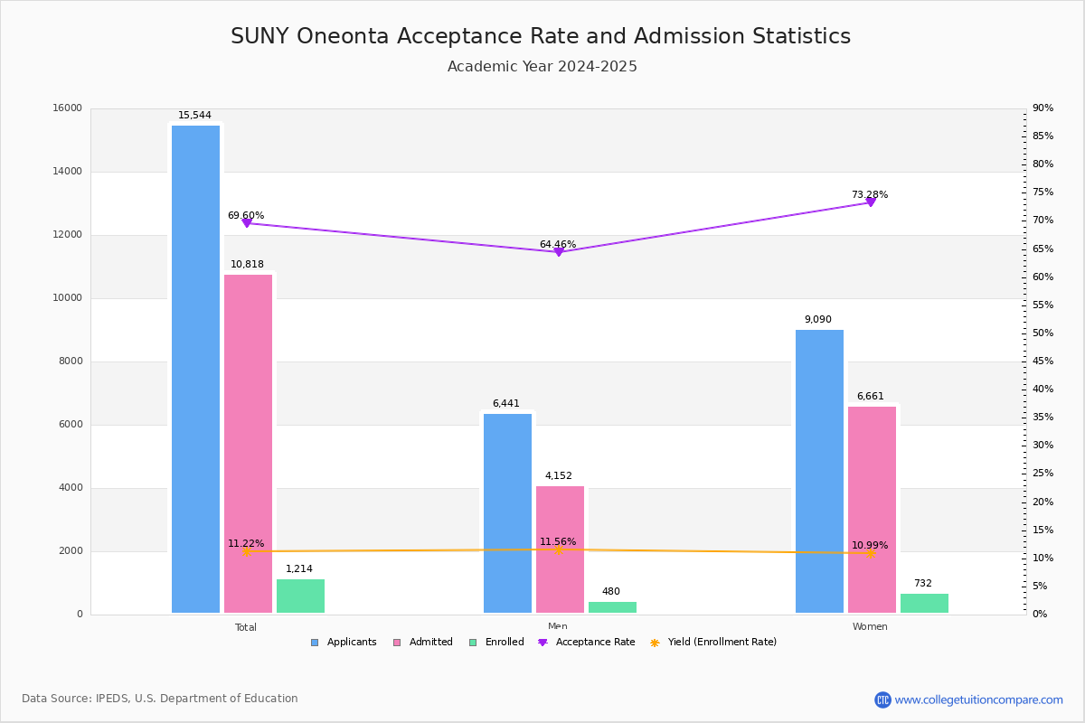 Students that get into suny oneonta have an. The acceptance rate is 9%, placing it in the top 5% of colleges and universities.